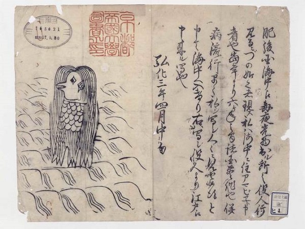 ちょうど、現在再放送されている「JIN-仁-」が、現代から江戸にタイムスリップしてコロリと格闘する南方仁の姿を描いている。当然、劇中には緒方洪庵も登場する。当時の江戸の人々は、加持祈祷、疫病退散のお札を張ったとあるが、ただしこの時、「アマビエ」の写しを病除けの牛王符(護符)として戸口に張ったかは分からない。
